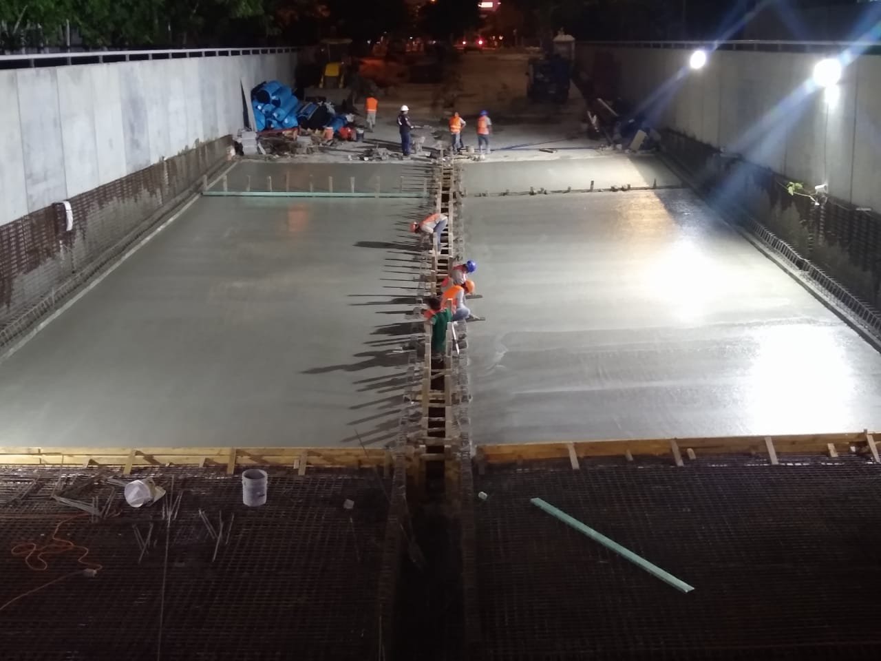 Los trabajos de rehabilitación en el paso a desnivel no se han detenido y aprovechando la tregua que dieron las lluvias esta semana se logró avanzar en los trabajos de rehabilitación del distribuidor vial en fases estratégicas, como el colado de las rampas del piso definitivo de la obra.