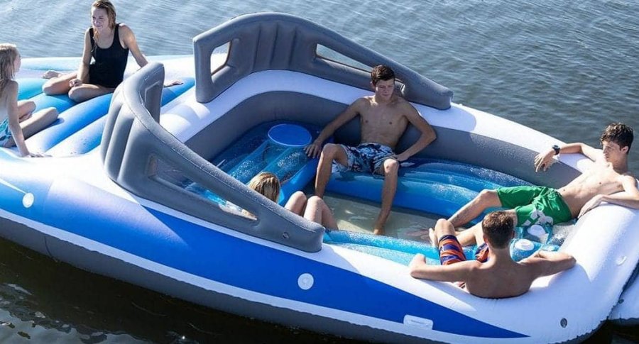 Por 270 dólares (aproximadamente $5,400.00 pesos), es posible comprar este bote inflable que pesa 30 kilos y se demora 20 minutos en inflar. El modelo se conoce como Inflatable Bay Breeze Boat Party Island.