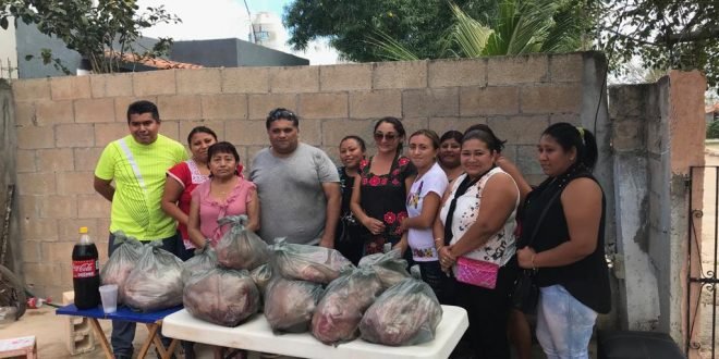 Kanasín.- Asfalsur y Desarrollo Humano Popular, A.C. entregaron el pasado lunes 24, por la mañana, más de cien pavos y despensas navideñas a igual número de familias de escasos recursos que habitan en los fraccionamientos Arboleda, Nueva Santa Isabel, Palmas San Pedro, Encinos, Arcos y Cerrito Mulchechén.