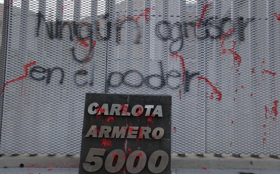 Con consignas en contra del político guerrerenses y de Morena, las feministas realizaron pintas y colgaron cartulinas en las instalaciones del Tribunal en la alcaldía Coyoacán.