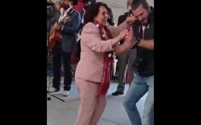 En un video que circula en redes sociales se ve a la candidata bailar al ritmo de la tambora con un hombre, quien tampoco usa cubrebocas, ello a pesar de que Querétaro se encuentra en máxima alerta al estar en semáforo rojo epidemiológico.