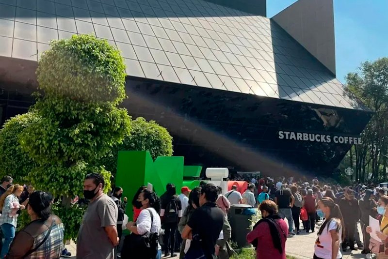 Las largas filas recorren la acera del edificio y dan vuelta a la calle hasta la entrada del Metro Hidalgo, que se localiza a una cuadra de las oficinas de Hacienda.