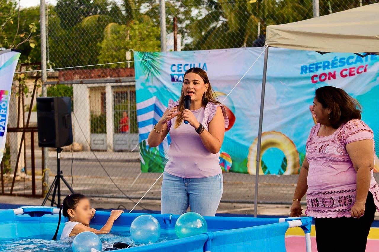 Ante la ola de calor extremo que permea en todo el país y que en Mérida ha rebasado los 40 grados, cientos de niñas, niños y jóvenes tuvieron la oportunidad de nadar y zambullirse en las piscinas portátiles que la diputada federal Cecilia Patrón dispuso para tal fin como parte de su programa “Refréscate con Ceci”.