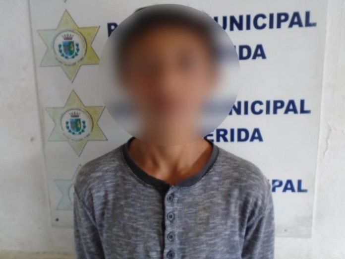 Por infringir el Reglamento de Policía y Buen Gobierno del Municipio de Mérida, al encontrarse bajos efectos de la marihuana, elementos de la Policía Municipal detuvieron hoy a las 12:35 horas, en el interior del mercado de “San Benito” a Adriel Efraín Rojas Rojas y al menor Abraham G.A..