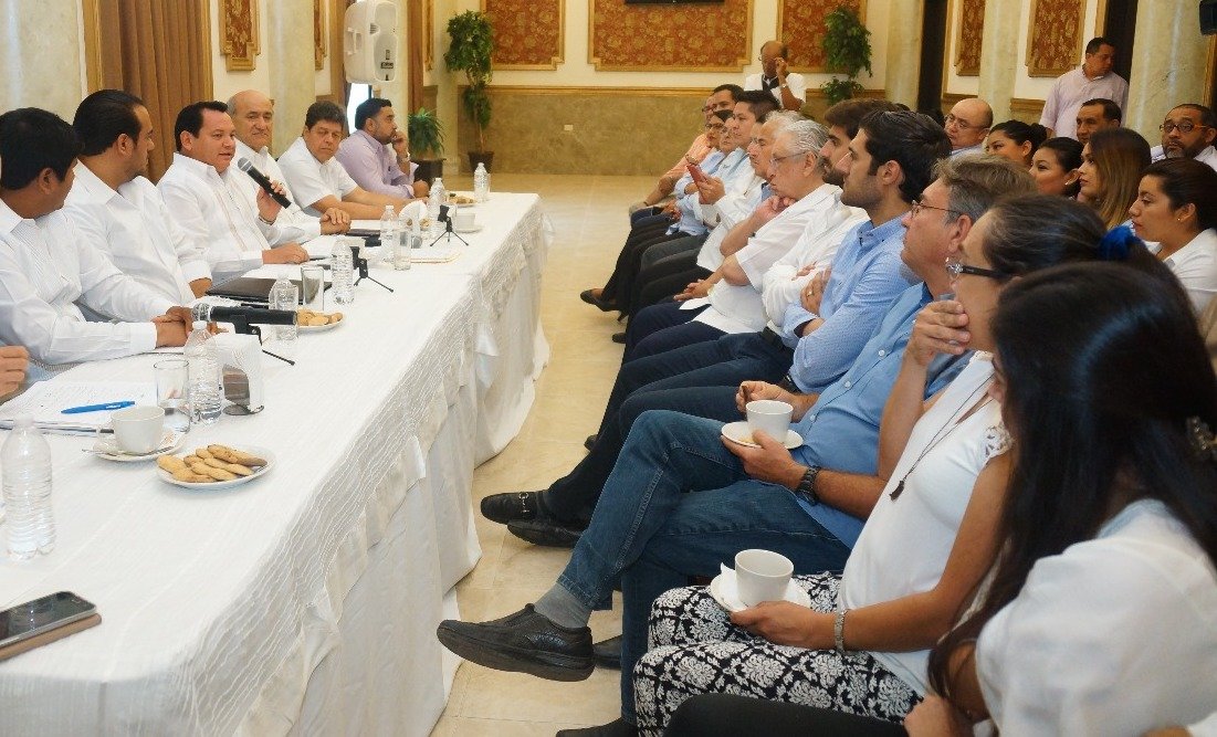 El encuentro, encabezado por Héctor José Navarrete Medina, director de la asociación, permitió que Joaquín Díaz Mena, Rogerio Castro, candidato a la senaduría, y Fernando Xacur, candidato a la alcaldía de Mérida, expusieran sus propuestas para mejorar el número de visitas y pernoctas en el estado.