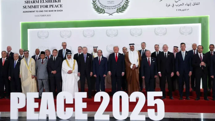 Una vez iniciada la Cumbre, Donald Trump firmó el acuerdo, un documento que formaliza el fin de la guerra entre Israel y Hamás en Gaza, conflicto que empezó el 7 de octubre de 2023 con la toma de rehenes y la muerte de varias personas a manos del grupo islamista.