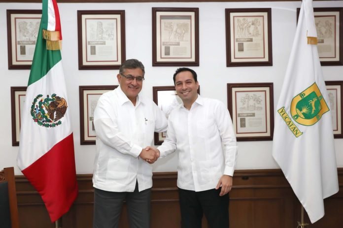 El mandatario yucateco y el dirigente del SNTE, quien realizó su primera visita a la entidad, sostuvieron una reunión de trabajo en el Salón de los Retratos de Palacio de Gobierno y coincidieron en que sólo con una labor conjunta y de diálogo se pueden alcanzar logros que beneficien al sector magisterial y repercutan en un mejor proceso de enseñanza.