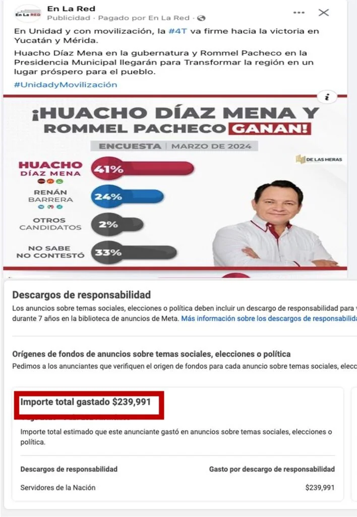 Lo más alarmante es que desde México se están destinando más de 600 mil pesos para posicionar encuestas falsas en Facebook, en las cuales se asegura que los candidatos de Morena Yucatán mantienen una amplia ventaja.