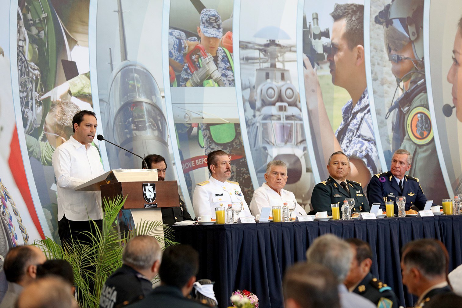 Por eso, la seguridad es un bien que los yucatecos debemos cuidar y debemos preservar. Así lo entendemos en el Gobierno de Yucatán, y la colaboración de las Fuerzas Armadas de México constituye, sin duda, un gran respaldo en ese sentido. Reiteramos la más amplia disposición del Gobierno del Estado de coordinarnos con la Fuerza Aérea Mexicana, pero, por supuesto, también, con el Ejército Mexicano, la Naval y la Policía Federal, puntualizó.