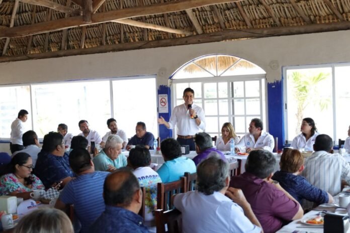 Progreso, Yucatán, 13 de abril de 2024.- Erik Rihani González, candidato a la alcaldía de Progreso por el Partido Acción Nacional, se reunió este sábado con el sector Pesquero de este Puerto para intercambiar diferentes puntos de vista y presentar su proyecto de campaña el cual contempla a los hombres de mar.