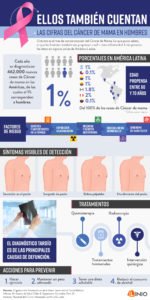 Las células cancerígenas se desarrollan en el tejido mamario, que ambos, hombres y mujeres poseen. Aunque en el caso masculino, las estadísticas a nivel mundial dicen que poco más del 1% de todos los casos diagnosticados pertenecen a este sector de la población, se tienen menos probabilidades de vencer la enfermedad gracias al diagnóstico tardío.