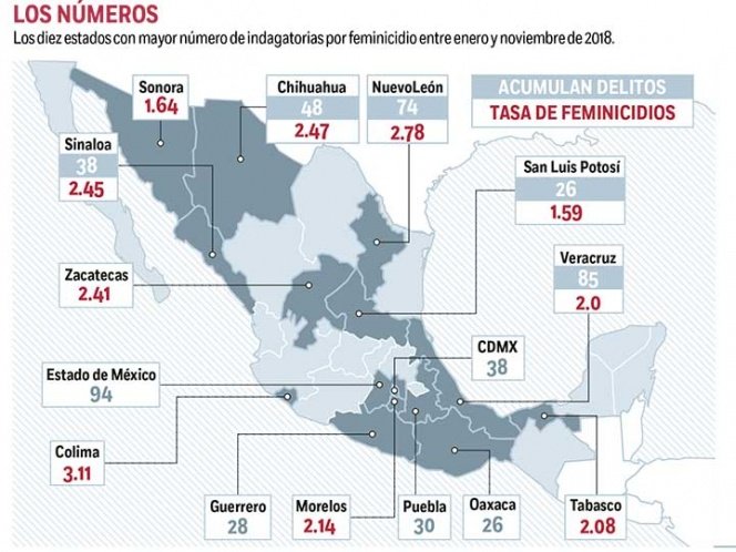 El año pasado, seis de las 32 entidades federativas sumaron 49.6% del total de los feminicidios cometidos en todo el país.