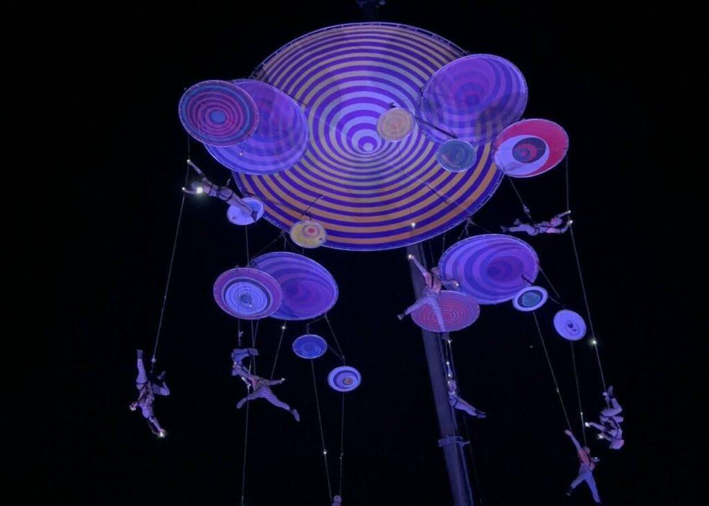 De los sitios más concurridos, el Remate del Paseo de Montejo recibió a unas 16 mil personas atraídas por la música de rock en vivo, las luces de colores y la destreza e intrépida actuación de la compañía Voalá en el espectáculo de teatro aéreo «Muaré Experience», que se presentó en dos ocasiones.