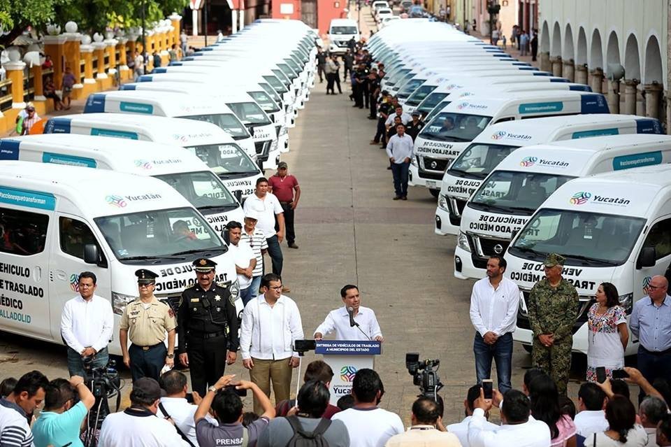 El gobernador del Estado Mauricio Vila Dosal entregó este día 47 unidades de traslado médico que llegarán a 35 municipios del oriente del estado, beneficiando a más de 400 mil yucatecos.