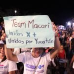 Sosteniendo una cartulina con la leyenda «Team Macari, Unidos x +, unidos por Yucatán», una mujer compartió con el candidato de la coalición Fuerza y Corazón por México las necesidades del municipio y expresó su respaldo hacia él.
