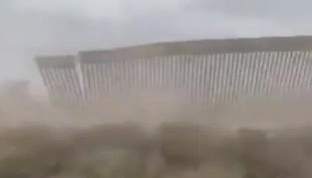Un grupo de trabajadores en Texas captó como la fuerza del fenómeno tiró una parte de la reja que sirve para impedir el paso de migrantes por la zona.