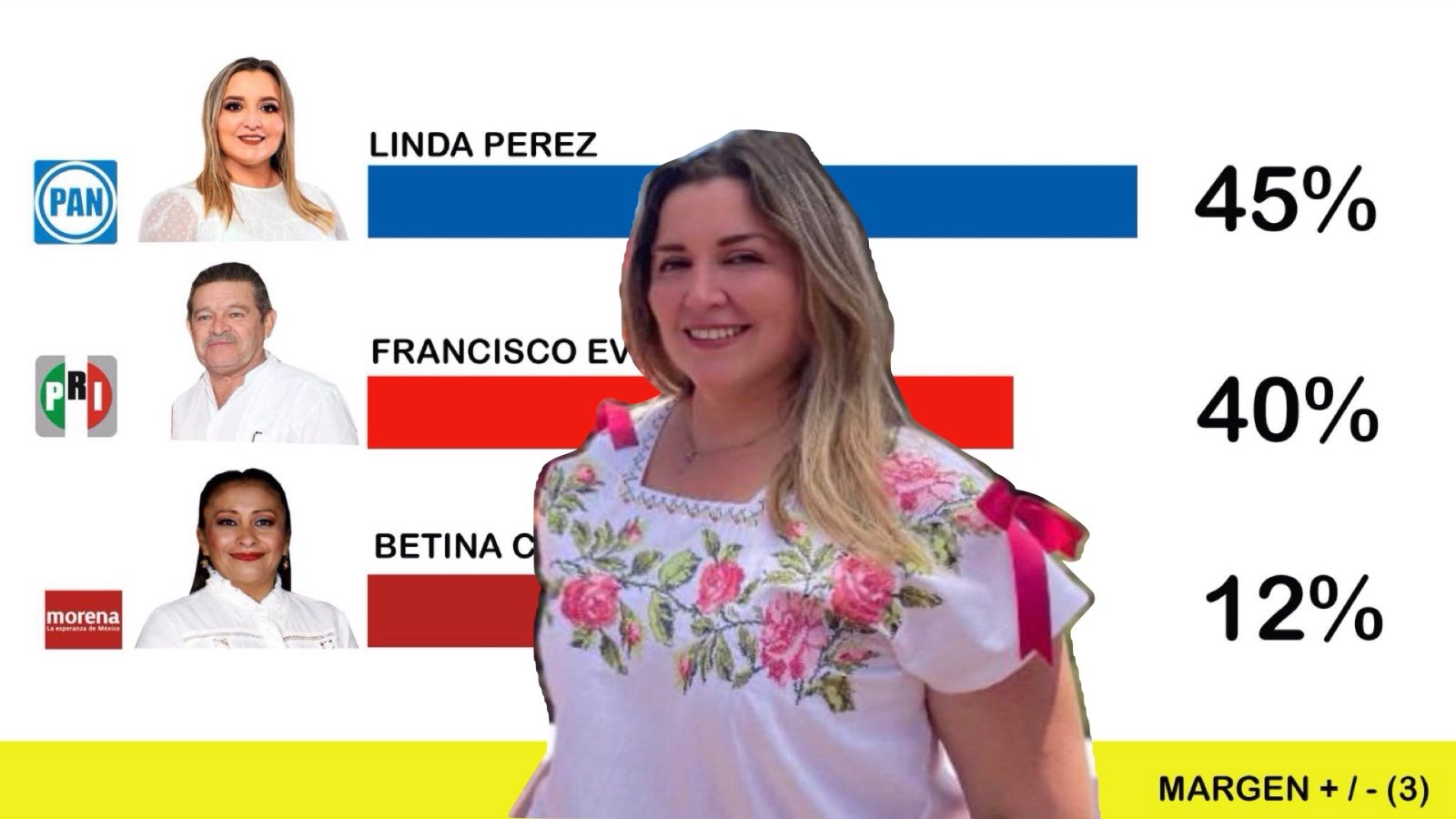 Linda Pérez Quijano, candidata del Partido Acción Nacional (PAN), emerge como la principal opción entre los votantes en Conkal, según las últimas encuestas. Con un margen de casi 11 puntos sobre su rival más cercano, representante del PRI, Pérez Quijano se posiciona como la favorita para liderar el municipio en las próximas elecciones.