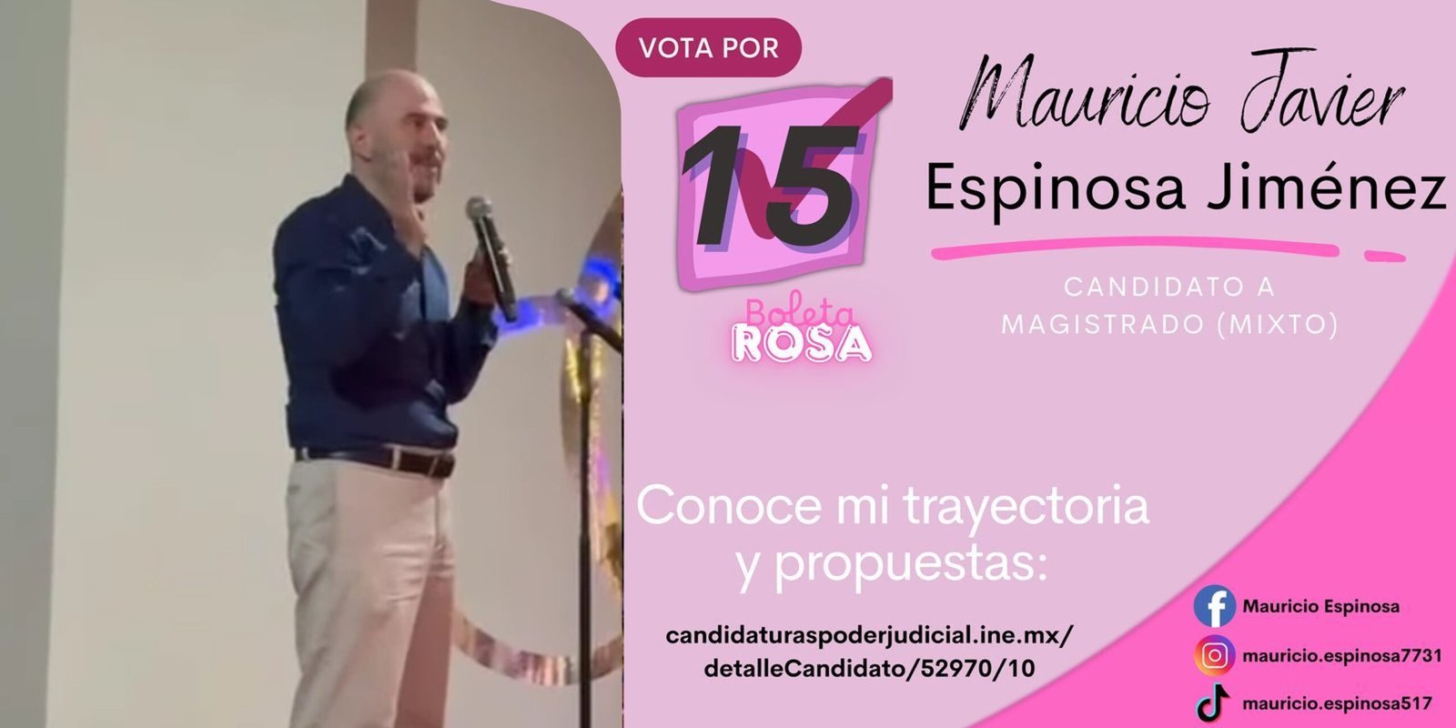 En el marco de la mesa de diálogo “Los nuevos retos de la justicia en México”, organizada por la Asociación Nacional de Tiendas de Autoservicio y Departamentales (ANTAD), el candidato a Magistrado Federal Mauricio Javier Espinosa Jiménez —quien aparece con el número 15 en la boleta rosa— subrayó la urgencia de garantizar una impartición de justicia libre de influencias externas.