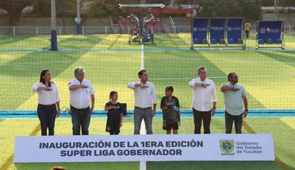 El gobernador Mauricio Vila Dosal inauguró la primera edición de la Super Liga Gobernador 2024, un torneo organizado por el gobierno del Estado a iniciativa del propio Vila Dosal, que reúne a los mejores equipos de fútbol del estado, seleccionados por un Consejo Deportivo.