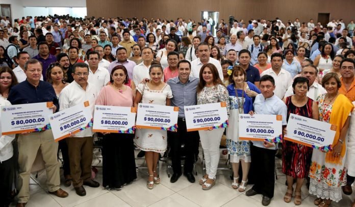 En el evento, el preescolar “Zazil Kuxtal” de Seyé, la primaria “Emiliano Zapata” de Nohsuytún, Valladolid, la escuela de educación especial Centro de Atención Múltiple número 14 de Progreso, y la Secundaria Técnica número 67 de Tahdziú, recibieron de manos del titular de Vila Dosal fondos por 90 mil pesos.
