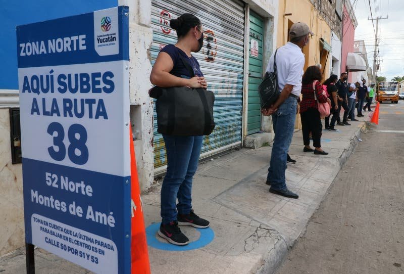 Lo mismo se observó en la zona de ascenso de las rutas del Poniente, de la calle 61, desde la 66 hasta la 72, cuyos usuarios se resguardaron del sol en la acera de enfrente que proyectaba sombra, pero guardando la sana distancia, aunque no estaba marcada en el piso porque estaban fuera del paradero oficial.