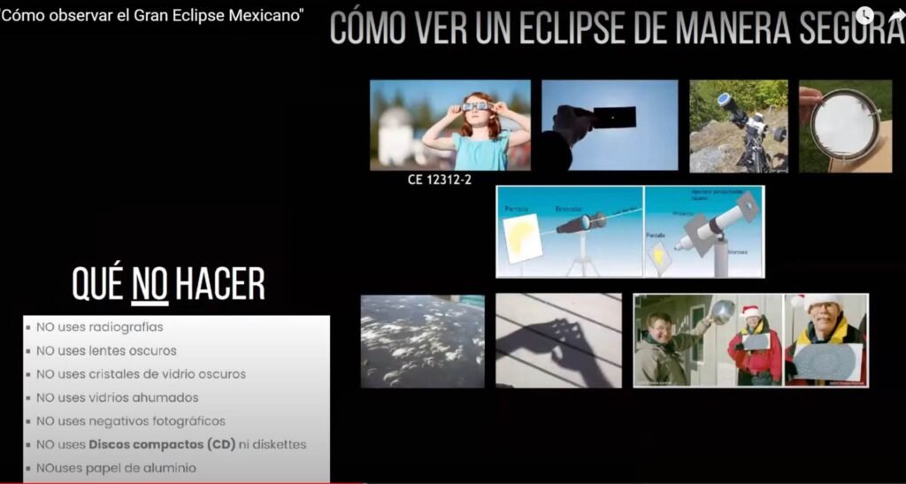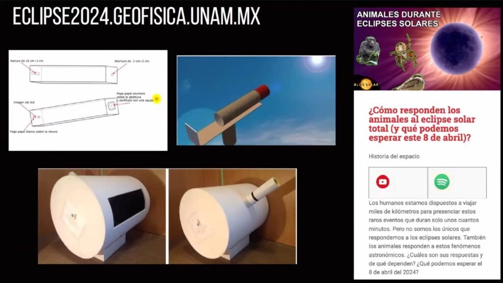 El Instituto ofrece información en el sitio https://eclipse2024.geofisica.unam.mx/ donde se pueden encontrar instrucciones o animaciones de cómo construir algunos aditamentos.