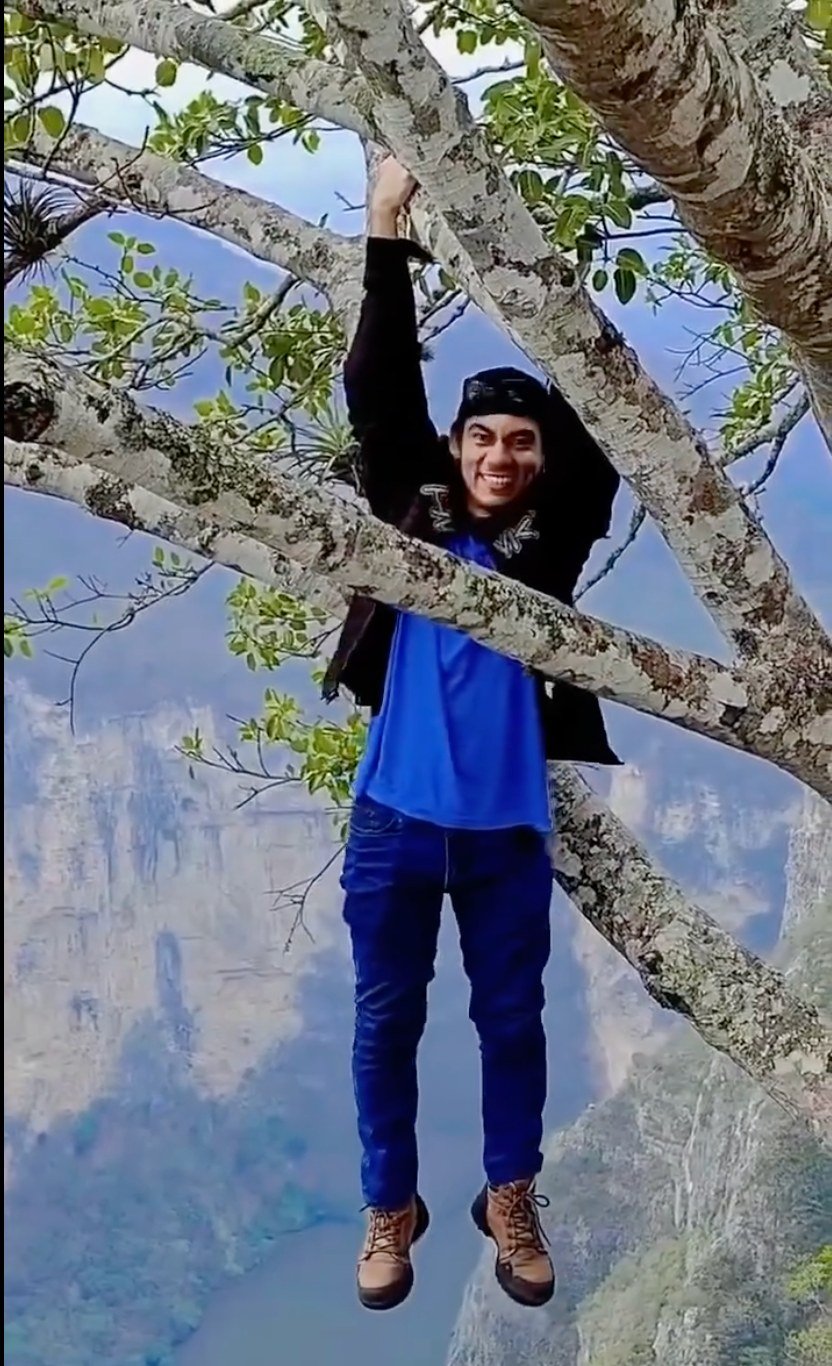 En las imágenes difundidas en redes sociales, se observa como el influencer, se cuelga de un árbol al borde de un acantilado en el mirador conocido como «La Coyota», a más de 800 metros de altura. Mientras sus acompañantes lo graban, se escucha a uno de ellos decir: «Este bato sí está bien brincado», en referencia a la imprudente acción.