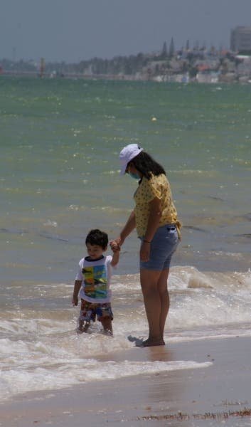 Se vio cierta tolerancia con quienes se “aventaron” a darse un chapuzón en el mar, de disfrutar el agua marina y de convivir con familia o amigos dentro del mar, un privilegio que muy pocos disfrutan por el cierre de playas en Yucatán.