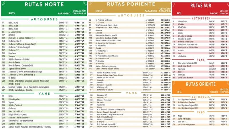 Debido a lo anterior, también serán reubicados temporalmente los paraderos de las rutas norte en las calles 64 por 61, 63 por 66 y 62 por 65; en tanto que para el sur, en la 58 por 71 y 69 por 67; mientras que las rutas que van hacia el poniente, las de la 66 por 65 y 67, 64 por 63, 57 por 62 y 67 por 68; los que van al oriente estarán en la 59 por 56 y 54 por 59.
