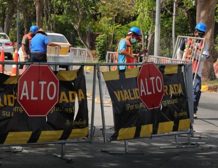 A unos días del inicio de los trabajos para rehabilitar el distribuidor vial en Prolongación Paseo de Montejo, en su cruce con Circuito Colonias, ya se registra un avance en el corte de las partes dañadas y fracturadas de la superficie de rodamiento.
