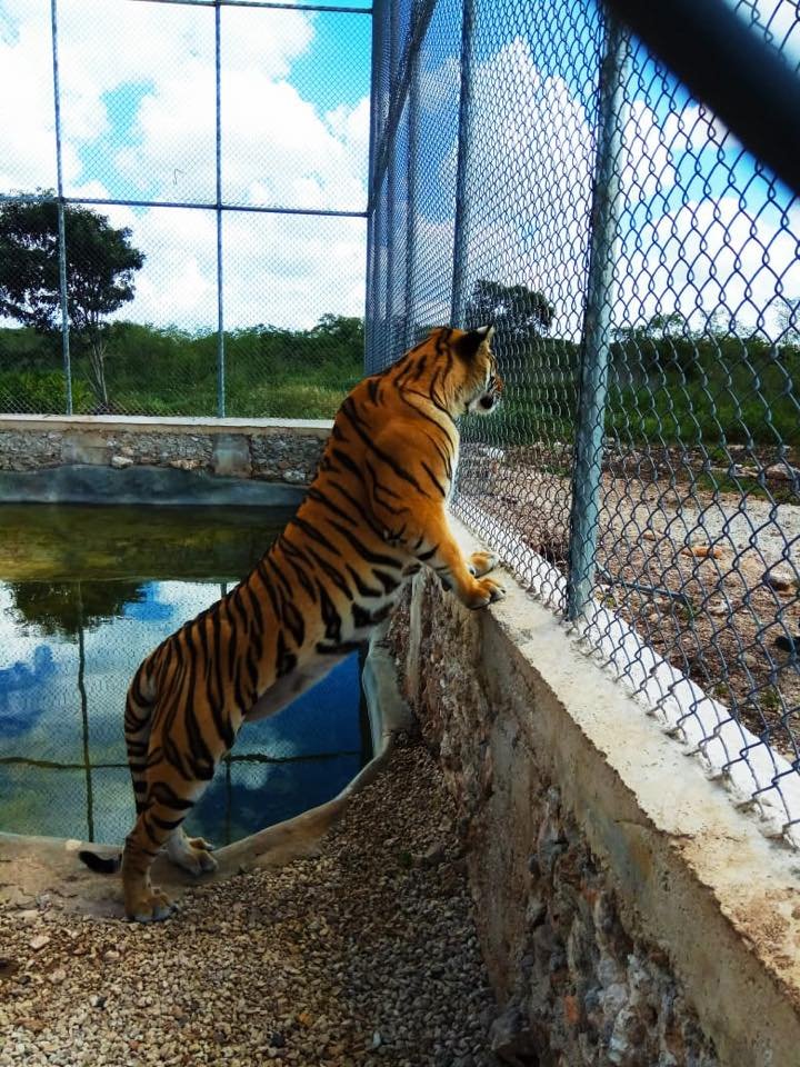 Mérida, Yucatán, 08 de agosto de 2018.- La Procuraduría Federal de Protección al Ambiente (PROFEPA) aseguró dos ejemplares de tigre de bengala (Panthera tigris) que se encontraban en el Rancho Santa María, ubicado en el municipio de Baca, del estado de Yucatán, al no acreditarse su legal procedencia, entre otras irregularidades.