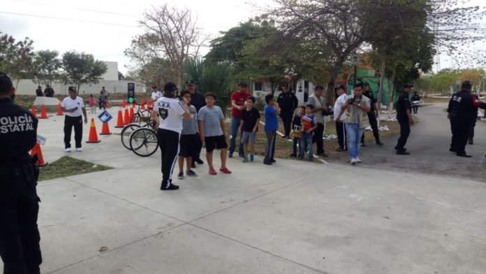 Este sábado, policías estatales convivieron con vecinos y visitantes del Parque Lineal Paseo Verde, al Poniente de Mérida, en el marco del Programa Recreativo de Asistencia y Proximidad Social.