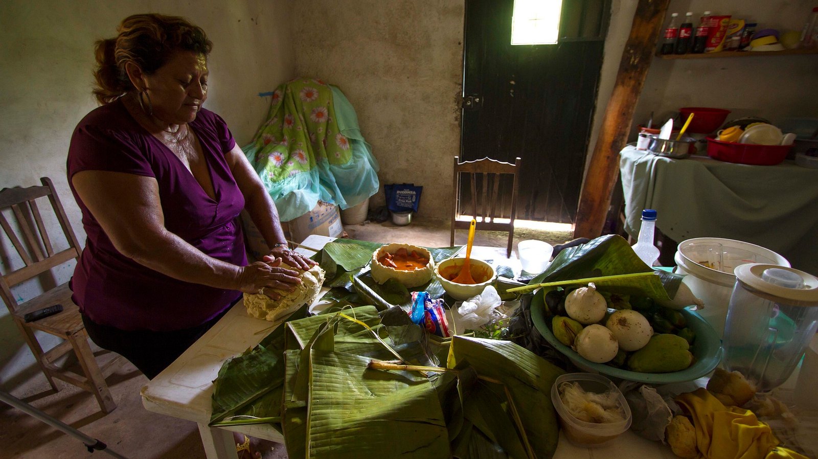 »» Mezcla la masa de tortilla con el líquido de achiote, la manteca y sal.