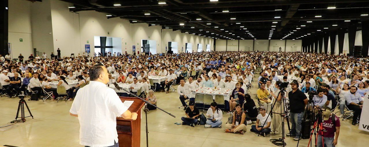 Acompañado de la candidata a la alcaldía de Mérida, Cecilia Patrón Laviada, y miles de trabajadores del sector salud, reunidos en el Centro de Convenciones Yucatán Siglo XXI, aseguró que su gobierno contratará al personal que ha sido despedido y amenazado por el Gobierno Federal de Morena, quien les prometió darles bases laborales al término de la pandemia y ahora los condiciona a trasladarse a otros estados para mantener sus contratos.