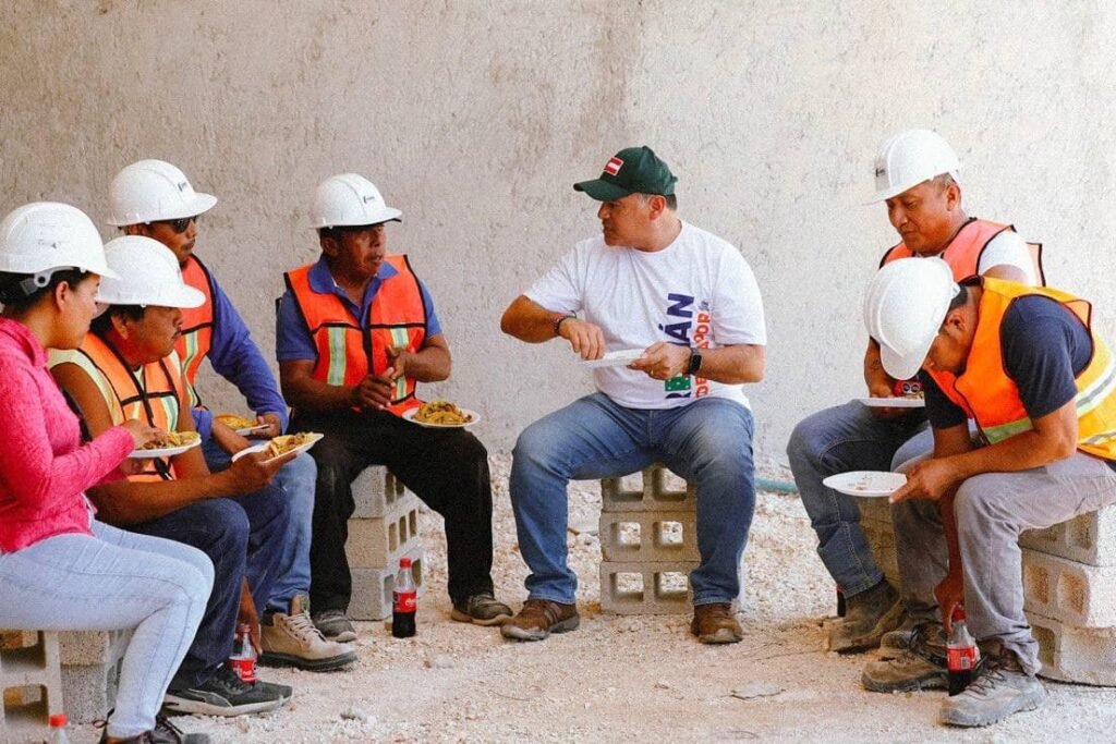 Ahí, Renán Barrera compartió con el personal que se encontraba en receso disfrutando del tradicional convivio que enmarca el día del albañil, y dónde el candidato aprovechó para platicar con los trabajadores sobre su proyecto de gobierno, el cual busca mejorar la calidad de vida de cada yucateco.
