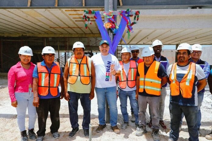 En el día de la Santa Cruz, fecha importante para todos los trabajadores de la construcción, el candidato a la gubernatura del estado por el PAN, PRI y Nueva Alianza, Renán Barrera Concha, visitó una obra que se encuentra en desarrollo al nororiente de la ciudad, con el fin de convivir con los alarifes, arquitectos e ingenieros del lugar.