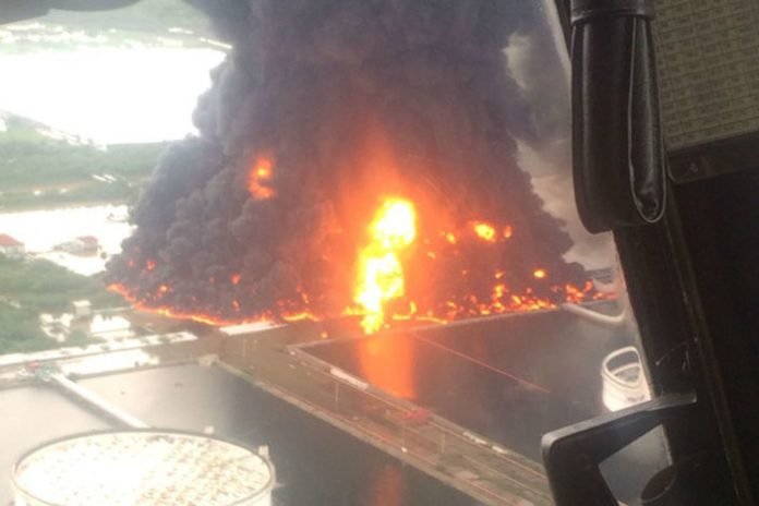 Personal de seguridad de Pemex y elementos de diversas corporaciones trabajan para controlar el incendio registrado en la refinería “Antonio Dovali Jaime” de Salina Cruz, Oaxaca. Hasta el momento, no hay lesionados.