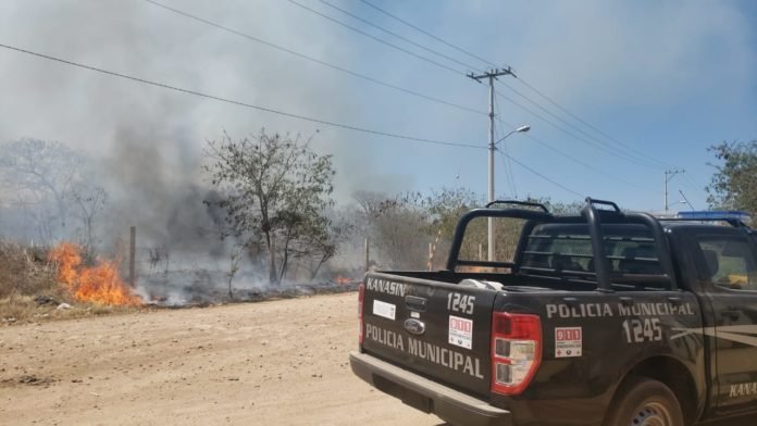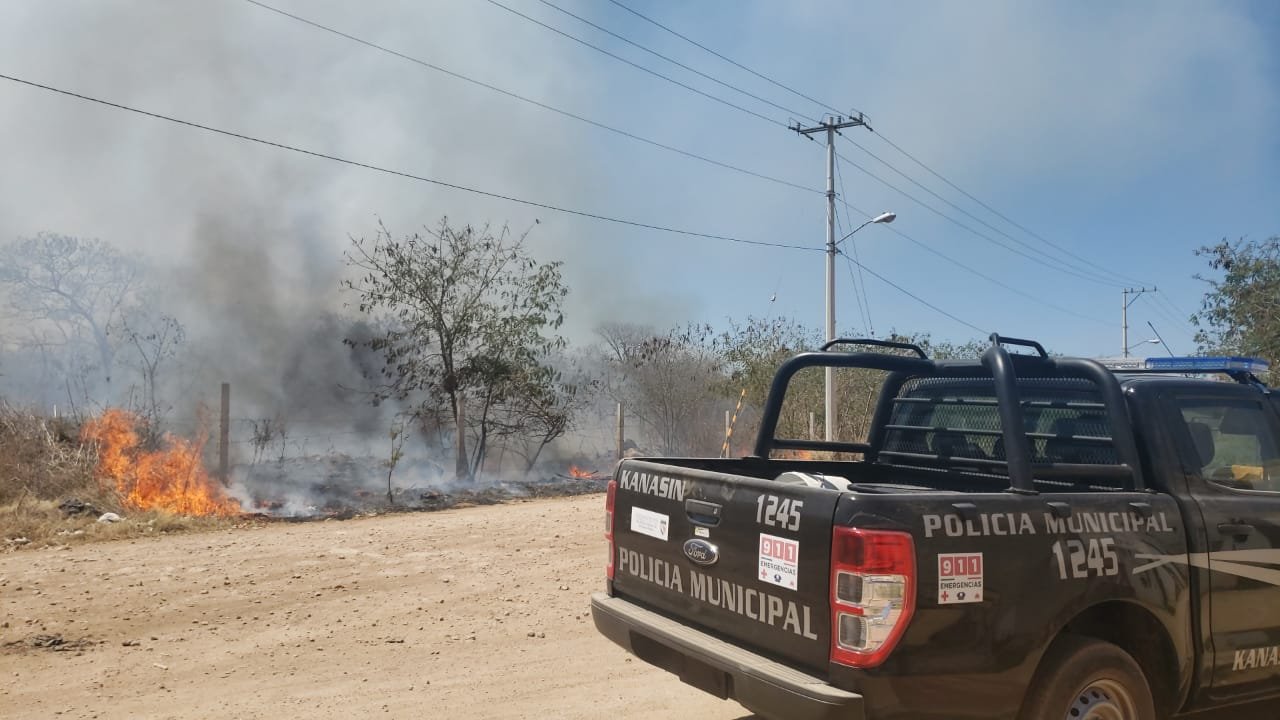 El específico de Kanasín, tiene una extensión de unos 30 metros de alcance, y se ha generado una rápida respuesta para evitar que se extienda en más espacio, esto debido a la seca que se puede observar en la vegetación de la zona.