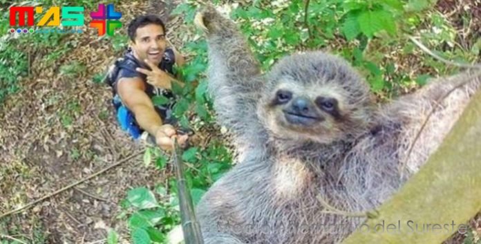 El ‘selfie’ de un turista junto a un oso perezoso en la selva se ha vuelto viral en la red social Facebook. El animal aparece sonriente y con los brazos extendidos.