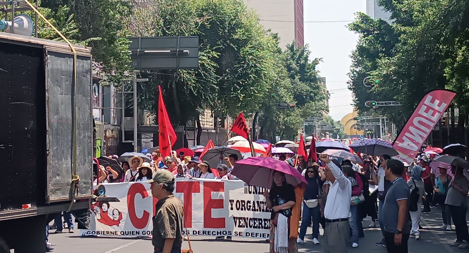 Convocada por la Coordinadora Nacional de Trabajadores de la Educación (CNTE) y respaldada por sindicatos y colectivos de sectores como salud, cultura, transporte y universidades, la movilización exigió respeto a los derechos laborales, salarios dignos y acceso efectivo a seguridad social y pensiones justas.