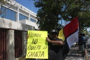 Afuera del tribunal personas de Homún se manifestaron con tambores, con la bandera maya y con pancartas de rechazo a la granja y reivindicando el derecho del pueblo a decidir. Mientras se manifestaban las personas de Homún y mientras sesionaba el Tribunal, un fuerte despliegue policíaco se hizo sentir. Más de cinco camionetas con antimotines pasaron frente al tribunal y se estacionaron cerca del Tribunal por un lapso de media hora. Después se retiraron algunas de las camionetas pero siguieron pasando frente al tribunal en varias ocasiones.