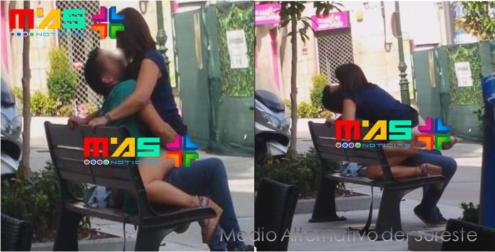 La reacción de muchos fue echar mano del móvil y comenzar a grabar mientras los amantes seguían haciendo su espectaculo en el banco.