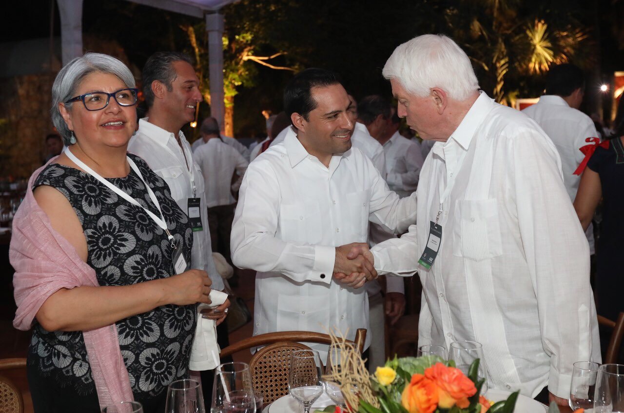 Ante el secretario de Comercio de los Estados Unidos, Wilbur Ross y los de Relaciones Exteriores, Economía y Gobernación de México, Marcelo Ebrard Casaubón, Graciela Márquez Colín y Olga Sánchez Cordero, respectivamente, el mandatario señaló que a través de este encuentro, los miembros de la Cámara de Comercio de los Estados Unidos podrán conocer las razones por las cuales Yucatán se está convirtiendo en un imán de inversiones, al encaminarlo a ser un estado competitivo, seguro y que ofrezca certeza a los inversionistas.